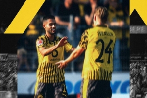 多特在本場比賽占據(jù)66%控球率優(yōu)勢,射門20-8、射正13-6、角球4-1均處于領(lǐng)先。本卡拉、揚(yáng)-庫托、薩比策、阿德耶米在前28分鐘連進(jìn)4球,布蘭特在第36和37分鐘雙響,主隊(duì)由Josue Santo在第44分扳回一城。易邊再戰(zhàn),拜爾和埃茲希勒各入一球?qū)⒈确侄ǜ駷?-1。