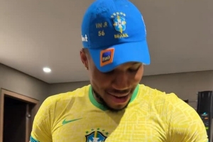 阿德托昆博社媒曬出視頻,展示維尼修斯送給他的禮物,其中包括巴西隊的球衣、帽子和球鞋等物品。