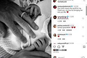 索博斯洛伊?xí)裾詹懙溃骸澳愕恼Q生對(duì)我來(lái)說(shuō)意味著全世界。謝謝你,我的愛人,把她帶到我們的生活!??”