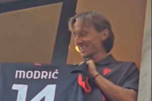 莫德里奇向窗外球迷展示了自己的14號球衣,整條街道都被狂熱的米蘭球迷所占據(jù),他們齊聲高喊著莫德里奇的名字盧卡。