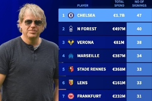 英超big6引援費用及人數(shù):切爾西花費17億歐簽下47名球員,斷檔領先↓
