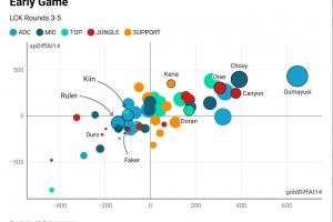 值得一提的是,Gumayusi兩項數(shù)據(jù)均為全LCK最高,他在14分鐘平均經(jīng)濟差超過600的同時14分鐘平均經(jīng)驗差來到接近500。