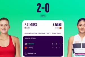 體育資訊8月9日訊 WTA1000辛辛那提首輪,王雅繁0-2不敵斯特恩斯止步首輪。