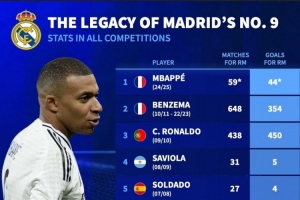 體育資訊8月9日訊 皇馬官方宣布,恩德里克將身穿9號球衣,德國轉會市場盤點了皇馬近10位9號球員。