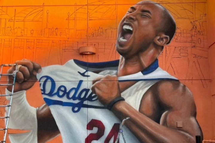 體育資訊08月10日訊 近日,洛杉磯街頭正在繪制科比-布萊恩特的新壁畫,壁畫上,科比穿著道奇隊(duì)的球衣。