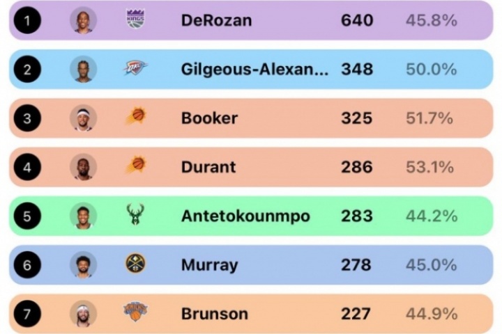 字母哥:我中距離聯(lián)盟第2&我、德羅贊、KD、布克、還有一個我忘了