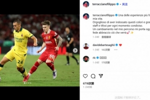 泰拉恰諾寫道:“這是我人生中最重要、最有成長意義的經(jīng)歷之一。能夠穿上這身球衣,我感到無比自豪;感謝所有隊(duì)友、教練組以及球迷們,感謝與你們共同度過的每一個(gè)時(shí)刻?!?/p>