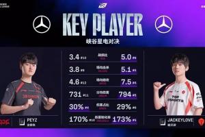 體育資訊8月13日訊 今日LPL第三賽段將迎來(lái)JDG對(duì)陣TES的比賽,賽前官方直播間給出了Peyz與JackeyLove數(shù)據(jù)對(duì)比:JackeyLove幾乎全面占優(yōu)!
