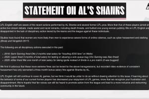 我們認為,對上述違規(guī)行為能處以更嚴厲的罰款,而針對有錄像證據的持續(xù)騷擾行為,AL戰(zhàn)隊僅對Shanks處以三個月獎金的罰款,這十分荒唐。