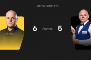 埃利奧特-斯萊塞打出5桿50+,斯圖爾特-賓漢姆打出4桿50+。兩人鏖戰(zhàn)至決勝局,決勝局中,斯萊塞單桿72分完成制勝,最終斯萊塞6-5戰(zhàn)勝賓漢姆,晉級八強。