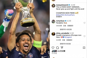 賽后,巴黎隊(duì)長馬爾基尼奧斯更新社媒曬出捧杯歡慶照片,并配文寫道:這就是巴黎圣日耳曼,永不放棄堅(jiān)持戰(zhàn)斗到最后!冠軍,我的兄弟 ????