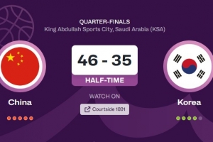 體育資訊8月14日訊 男籃亞洲杯今天繼續(xù)進(jìn)行,中國男籃和韓國男籃在1/4決賽對陣,半場結(jié)束時,中國男籃46比35領(lǐng)先。