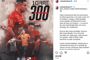 羅慕洛配文寫道:“職業(yè)生涯出戰(zhàn)300場!毫無疑問這很難不讓人激動,回首望去,作為職業(yè)球員能夠完成300次出場,對我而言這不僅僅是數(shù)字,更是一段由汗水、奉獻、信念與堅韌交織而成的旅途。”