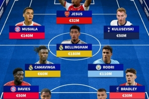 前鋒:穆西亞拉(拜仁)、熱蘇斯(阿森納)、庫(kù)盧塞夫斯基(熱刺)