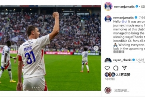 馬蒂奇社媒寫道:“大家好,里昂球迷們。這是一段難忘的旅程!我在這家俱樂部留下了許多永恒的回憶。
