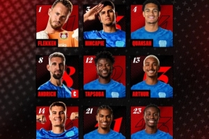 勒沃庫森首發(fā):1-弗萊肯、3-因卡皮耶、4-寬薩、8-安德里希、12-塔普索巴、13-阿圖爾-奧古斯托、14-???、21-阿明-阿德利、23-內(nèi)森-泰拉、24-阿萊克斯-加西亞、30-馬扎