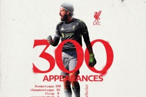 據(jù)利物浦官方統(tǒng)計(jì),這是阿利森代表利物浦出戰(zhàn)的第300場(chǎng)比賽。