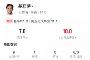 體育資訊8月16日訊 基耶薩在本場(chǎng)比賽中替補(bǔ)登場(chǎng),并完成絕殺。
