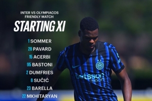 體育資訊8月17日訊 北京時(shí)間今天2點(diǎn)半,友誼賽國(guó)米對(duì)陣奧林匹亞科斯,國(guó)米此役首發(fā)已經(jīng)公布。