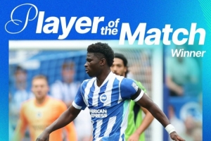 體育資訊8月17日訊 本賽季英超首輪,布萊頓1-1富勒姆。賽后,布萊頓中場巴萊巴當(dāng)選隊內(nèi)最佳球員。
