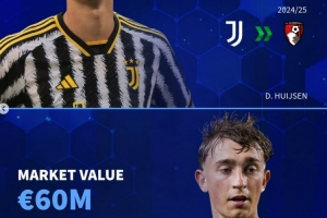 24/25賽季尤文1963萬(wàn)歐出售至伯恩茅斯,現(xiàn)身價(jià)6000萬(wàn)歐