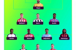 中場:庫杜斯(熱刺)、迪亞拉(桑德蘭)、賴因德斯(曼城)、塞梅尼奧(伯恩茅斯)