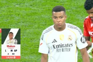 全場比賽結(jié)束,姆巴佩當選皇馬西甲首輪全場最佳球員。