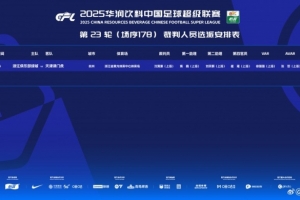 8月20日19:35 浙江隊vs天津津門虎 主裁判:沈寅豪 助理裁判:焦巍、劉宗麒 第四官員:崔雍 VAR:徐強強 AVAR:張哲 裁判監(jiān)督:孫葆潔