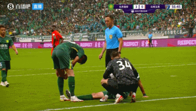 比賽第57分鐘,國(guó)安首發(fā)中衛(wèi)吳少聰無(wú)對(duì)抗情況下倒地示意自己受傷,隨后他被馮博軒換下。