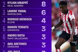 體育資訊8月21日訊 近日,數(shù)據(jù)機構(gòu)Squawka統(tǒng)計了西甲聯(lián)賽首輪突破次數(shù)最多的球員榜,尼科-威廉姆斯、姆巴佩和亞馬爾是唯一在首輪比賽中完成5次以上過人的球員。