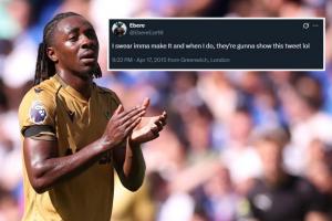 太陽報表示,16歲的埃澤當時剛剛被米爾沃爾解約,在2015年4月他發(fā)布了這條社媒:我發(fā)誓我一定會成功的,等我成功了,他們肯定會把這條推文找出來的,哈哈。