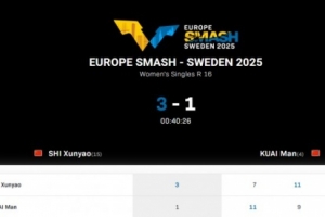 體育資訊8月22日訊 WTT歐洲大滿貫瑞典站女單1/8決賽,石洵瑤3-1蒯曼晉級(jí)。