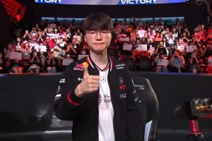體育資訊8月22日訊 LCK常規(guī)賽T1以2-1擊敗NS,賽后中單Faker亮出標(biāo)志性手勢(shì)點(diǎn)贊。