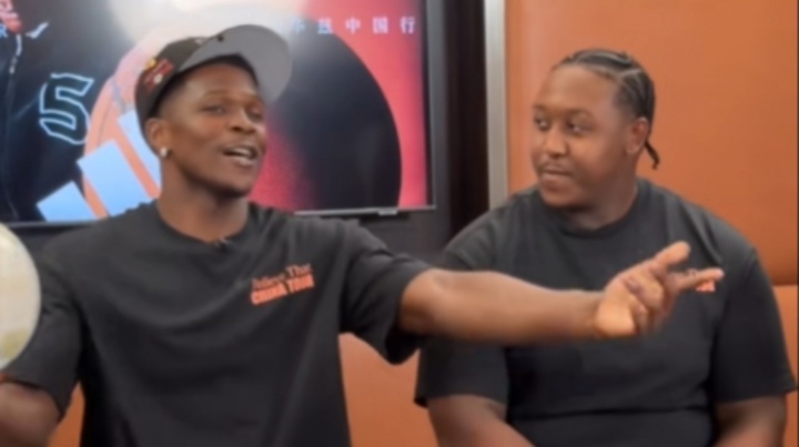 在錄制節(jié)目期間,華子和他的好友一起玩freestyle,有趣的是這位好友酷似“杰倫威”。