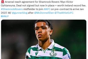 體育資訊08月24日訊 TA名記David Ornstein報(bào)道,阿森納從愛爾蘭球隊(duì)沙姆洛克流浪引進(jìn) 16歲中場(chǎng)奧日安武納達(dá)協(xié)議,2027年1月正式加盟。