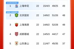 體育資訊08月25日訊 中超第22輪最后一場(chǎng)比賽結(jié)束,北京國(guó)安4-0戰(zhàn)勝武漢三鎮(zhèn),升至第2。目前中超積分榜上,申花49分位居榜首,國(guó)安、海港均48分分列二三,蓉城47分第四,青島海牛、長(zhǎng)春亞泰15分位列降級(jí)區(qū),積分榜后四位球隊(duì)也僅差2分。