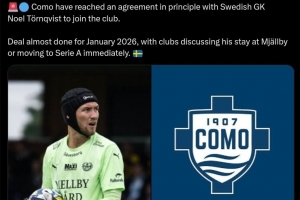 體育資訊8月25日訊 據(jù)知名轉(zhuǎn)會專家羅馬諾報(bào)道,科莫已經(jīng)與瑞典門將諾埃爾-托爾奎斯特達(dá)成原則性一致。