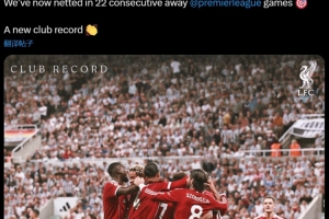 利物浦官方寫道:“我們已經連續(xù)第22場在英超客場比賽中取得進球,創(chuàng)下了俱樂部新紀錄!”