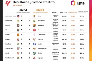 體育資訊8月26日訊 Opta統(tǒng)計(jì)了西甲第二輪的凈比賽時(shí)間,馬競(jìng)vs埃爾切凈比賽時(shí)間63分09秒最長(zhǎng),皇家?jiàn)W維耶多vs皇馬、萊萬(wàn)特vs巴薩二三位。
