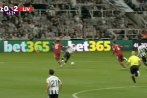 這一畫面發(fā)生于第47分鐘,當時利物浦多打一人2-0領(lǐng)先。紐卡反擊,巴恩斯前插,科納特補防,前者倒地,裁判未吹罰,VAR未介入,吉馬良斯抗議判罰因此吃到黃牌。