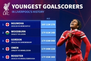 此役16歲小將恩古莫哈在終場(chǎng)補(bǔ)時(shí)階段為利物浦攻入絕殺進(jìn)球,據(jù)德國(guó)轉(zhuǎn)會(huì)市場(chǎng)統(tǒng)計(jì),他是利物浦隊(duì)史最年輕的進(jìn)球者。