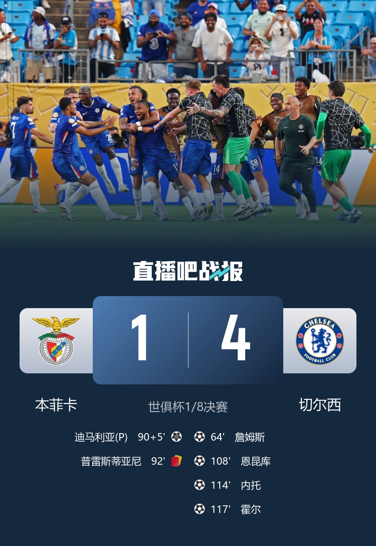 體育資訊6月29日訊 在世俱杯1/8決賽,切爾西經(jīng)歷加時(shí)4-1擊敗本菲卡。
