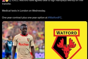 體育資訊8月26日訊 據(jù)知名轉(zhuǎn)會專家羅馬諾報道,沃特福德已經(jīng)同意引進(jìn)自由球員南帕里斯-門迪,球員將在周三前往倫敦完成體檢,沃特福德將與其簽約一年,并有延長一年選項。