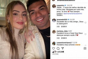 卡塞米羅社媒寫道:6月28日,這是我一生中最棒的決定走過(guò)的第11年。謝謝你的一切,我的愛(ài)人,我愛(ài)你 ?? 永遠(yuǎn)在一起。