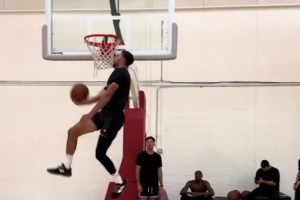 體育資訊8月29日訊 今日美媒Overtime曬出扎克-拉文胯下?lián)Q手扣籃的視頻,并配文:“拉文依舊能跳!”