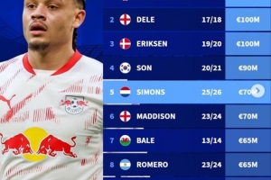 體育資訊8月30日訊 本周五,熱刺官方宣布以6000萬歐元從萊比錫簽下哈維-西蒙斯。根據(jù)德國轉(zhuǎn)會(huì)市場提供的數(shù)據(jù),西蒙斯的身價(jià)為7000萬歐元,在熱刺隊(duì)史足以排在第5位。