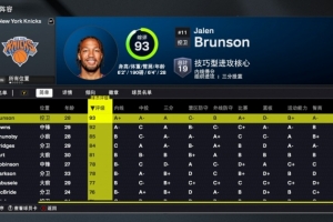 體育資訊8月30日訊 今日NBA 2K26正式發(fā)布,尼克斯隊球員能力值如下: