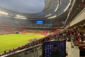 體育資訊8月30日訊 中超第23輪焦點(diǎn)戰(zhàn),蓉城坐鎮(zhèn)主場(chǎng)對(duì)陣海港,黃健翔現(xiàn)場(chǎng)解說(shuō),他談到了蓉城主場(chǎng)。