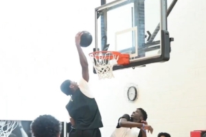 視頻中可以看到,亞歷山大正在和小球員單挑,只見亞歷山大一套連招后使出自拋自扣,引得全場歡呼。