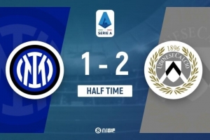 上半場比賽結束,國際米蘭主場暫時1-2落后烏迪內斯。